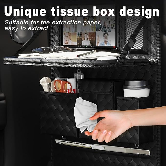 Car Seat Organizers,Multi-functional Back Seat Protectors, Storage Pouches, and Tray Holders (for Cars, Kids, Seat Back and Rear Seats) (Woven Black, 1 Pcs)
