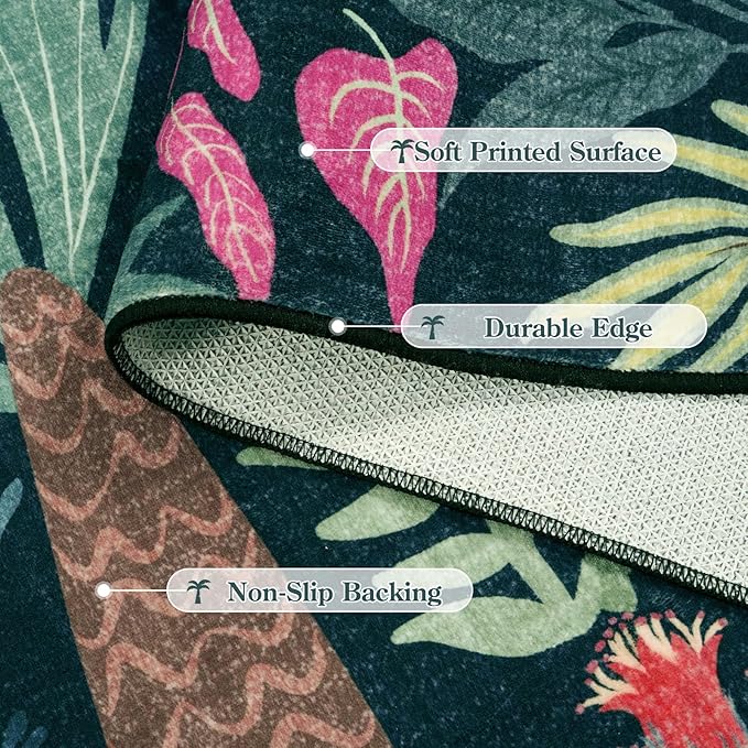 LIVEBOX Washable Bedroom Rug 8x10 Under Bed, Modern Stain Resistant Dark Green Botanical Rug for Living Room Playroom Kids Boy Room, Non-Slip Jungle Forest Print Rugs for Nursery Baby