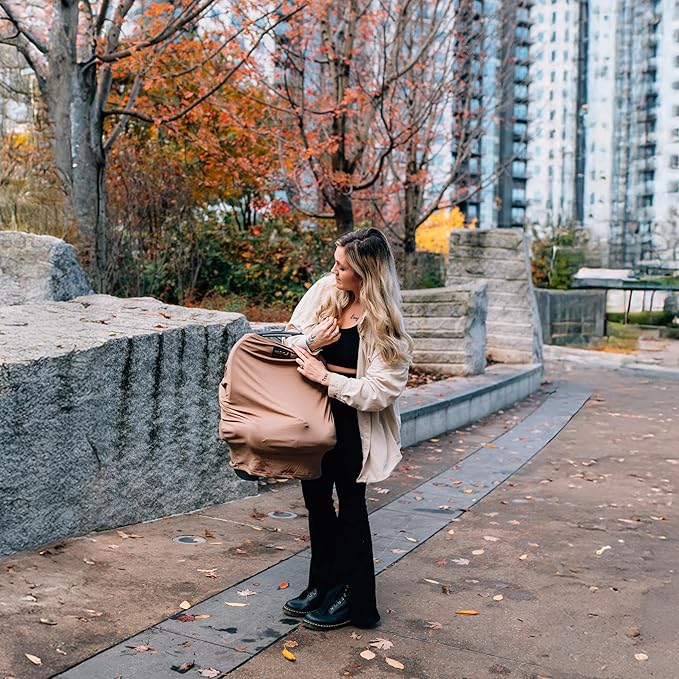 Milk Snob Original 5-in-1 Luxe Nursing Cover in Cocoa - Added Privacy Breastfeeding Cover, Car Seat Cover for Carrier, Stroller, High Chair, Shopping Cart, Lounger Canopy, Newborn Essentials