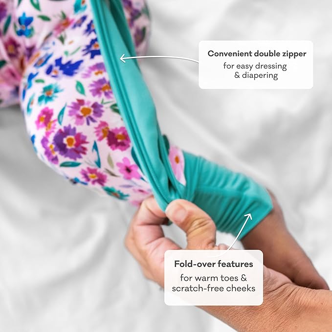 - [Fold Over Features] Our sleepers feature fold-over mittens (Preemie to 12-18M) to prevent scratching and fold-over foot cuffs for an easy switch between a footless romper and a footed sleeper. Plus, the two-way zipper makes middle-of-the-night diaper changes a breeze!