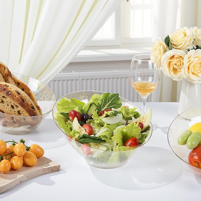 bUCLA 12 Pack Gold Glitter Plastic Serving Bowls - 54 OZ Angled Serving Bowls Disposable for Chip,Candy, Snack,Salad & Fruit - Ideal for Party & Wedding