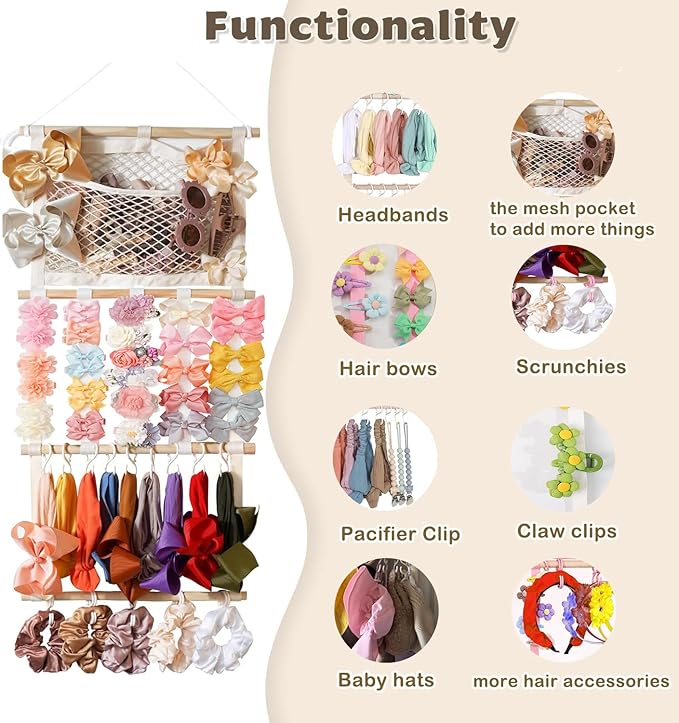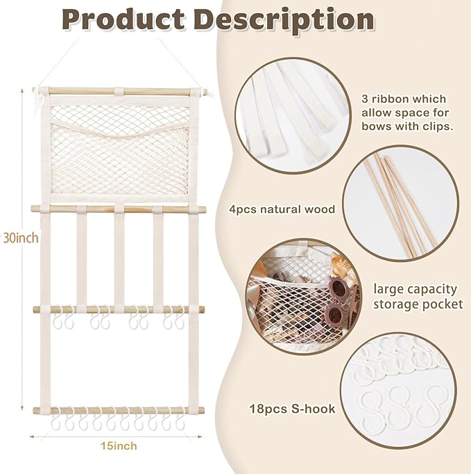 kangaroo Headband Holder Hair Bows Organizer,Large Capacity Bow Holder Hair Accessories Wall Hanging Organizer for Toddler Baby Girl Nursery Room Decor