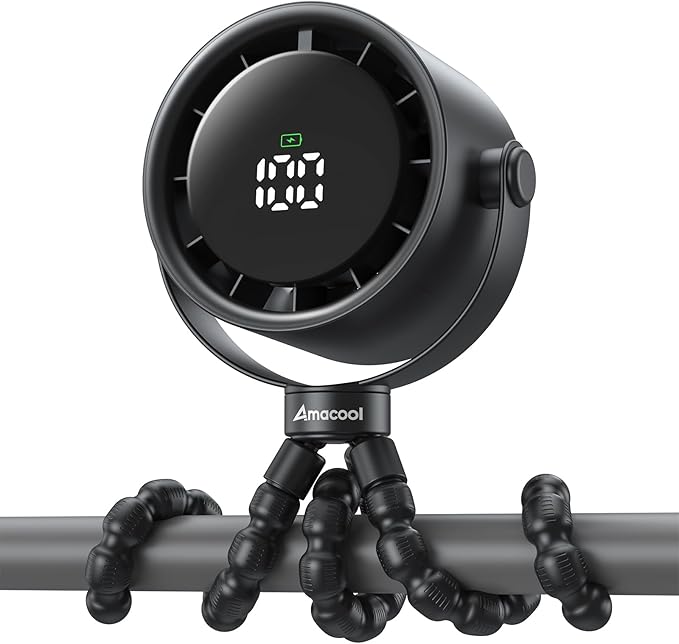 AMACOOL Baby Stroller Fan, Rechargeable Portable Clip on Fan, 17H Cooling with 5 Speeds, LED Display, 360°Rotate Personal Cooling Fans for Car Seat, Crib, Travel, Camping, Gifts for New Parents
