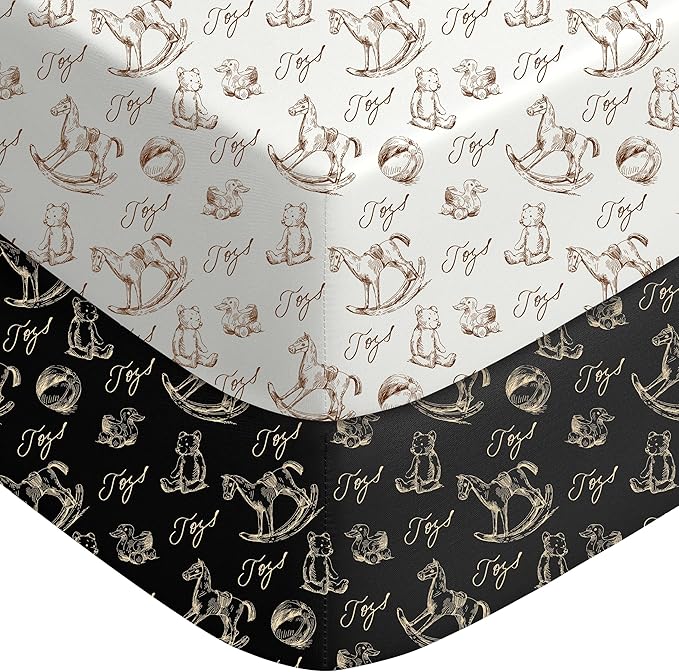 Yoofoss Baby Pack and Play Sheets 2 Pack for Boys and Girls - 38x26 Mini Crib Sheets Fitted Neutral Compatible with Graco Pack n Play Mattress,Ultra Soft Breathable Microfiber Rocking Horse