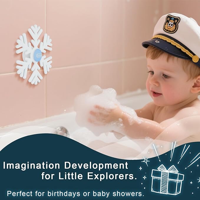 Large Baby Bath Suction Spinner Toys, Silicone Suction Spinner for Baby & Toddler, Novelty Spinning Top with Suction Cup for Highchair & Bathtub, Suction Toys for Car Window (Snowflake, Blue)