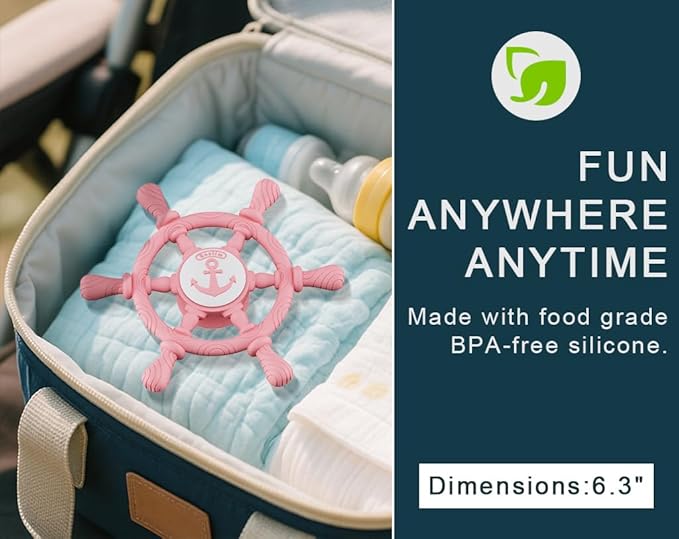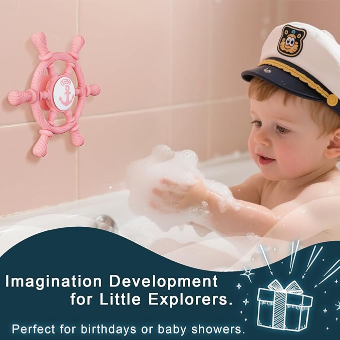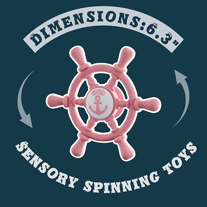 Bathtub Suction Spinner Toys - Silicone Bath & Highchair Sensory Toys for Babies & Toddlers, Novelty Spinning Top with Suction Cup, Car Window Travel Toys (Ship Steering Wheel Toy - Pink)