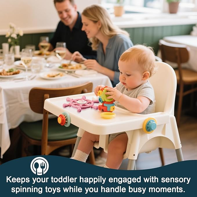 - A Great Distraction Suction Spinners:Perfect as a bath toy for babies & toddlers, high chair entertainer, or car window travel companion! The strong suction cups securely attach to tubs, trays, windows, and any smooth surface, keep your toddlers busy in their high chair while you’re cooking and on the car window while driving.