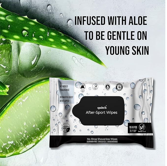 - ✅ Quick & Easy for After-Sports clean-up. Refresh on-the-go. Perfect for after soccer practice, baseball games, or outdoor play. Quitch After-Sport Wipes make freshening up with an easy swipe. No rinse, no mess, just fast full-body refreshment.