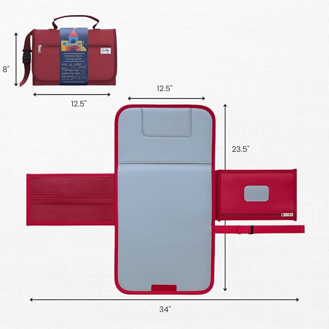 - COMPACT & TRAVEL FRIENDLY – Our portable changing pad for baby mat fits easily into any diaper bag, car diaper caddy, or attaches securely to a stroller. Lightweight yet durable, it unfolds into a spacious 23" x 34" travel changing pad that keeps baby protected from all surfaces. Perfect for use at home, in the car, during travel, or in public restrooms, our portable changing pad ensures parents can handle diaper changes anywhere with ease.