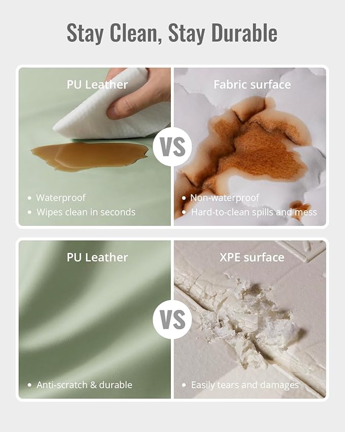 - Waterproof & Easy to Clean-Unlike many other mats that absorb spills, this vegan leather baby play mat is 100% waterproof, making it effortless to clean. Just wipe it down with a damp cloth to remove food, milk spills, or any other mess, keeping your baby’s play area spotless and hygienic
