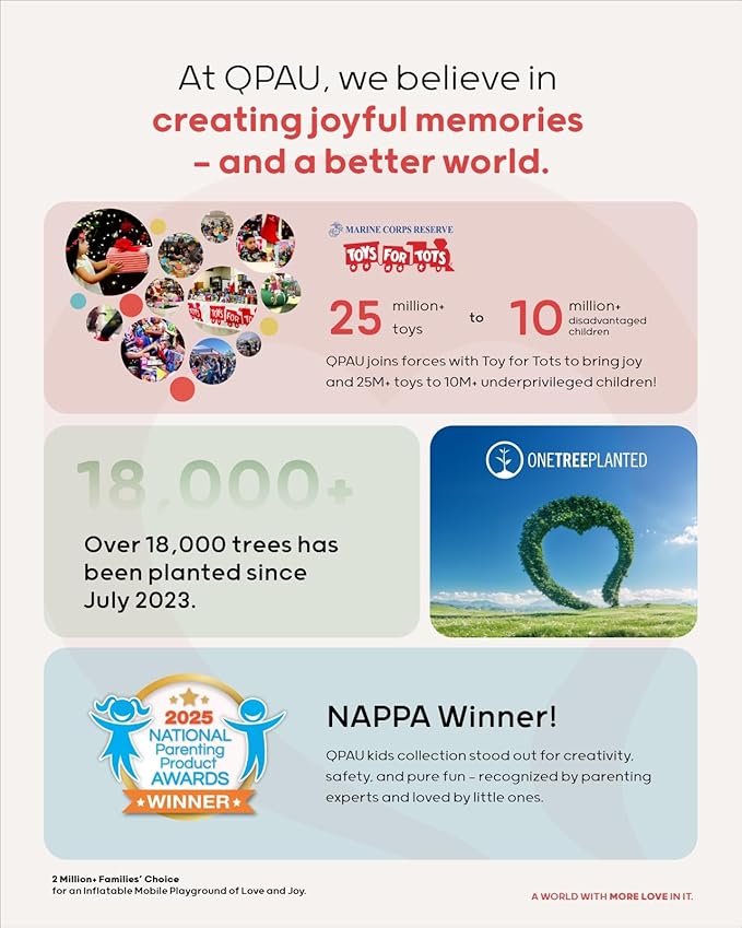 - Trusted by 2 Million Satisfied Customers: QPAU inflatable products have earned the trust and support of over 2 million satisfied customers worldwide. We are dedicated to providing high-quality, safe, and comfortable products, ensuring that every family enjoys peace of mind and happy moments.