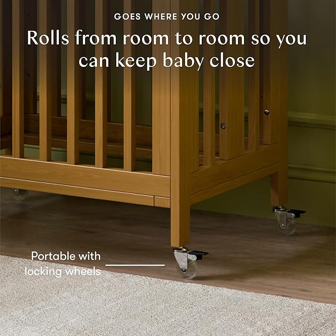 babyletto Rolli 9-in-1 Convertible Baby Crib w/Wheels - Includes Pad & Conversion Kits for Bassinet, Standard Crib, Toddler Bed, Daybed & Junior Bed - GREENGUARD Gold - 3 Adjustable Heights - Honey