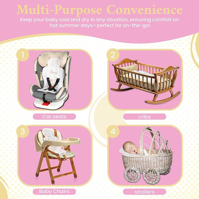 - Baby Safe Materials: Made from soft polyester cotton lining and waterproof outer fabric, this cooling seat cover is gentle on sensitive skin, durable, and easy to clean