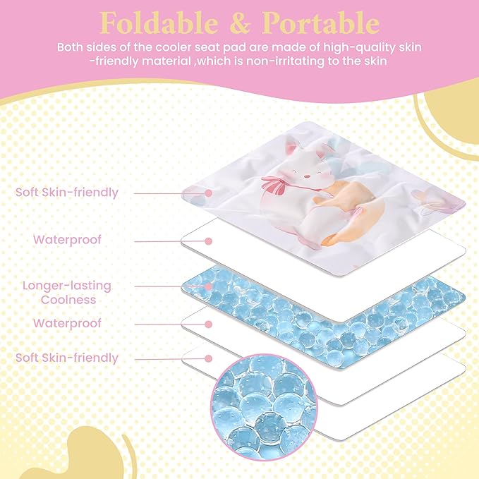 - Cooling Gel Beads: Our baby cooling seat pads have non-toxic polymer gel beads to provide long lasting cooling, keeping your baby cool and dry, reducing heat buildup during hot days for maximum comfort