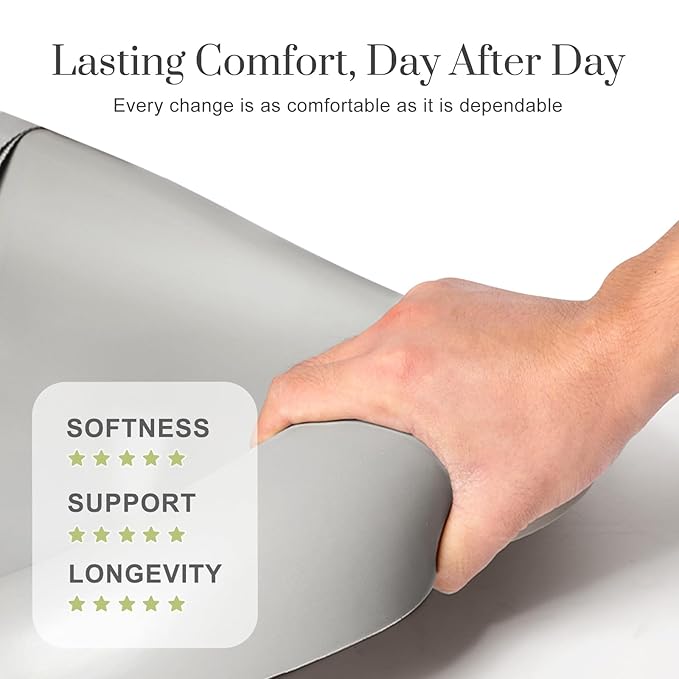 - BUILT TO LAST, DAY AFTER DAY: Made from durable, premium PU material, this changing pad is built to withstand the test of time. It resists wear and tear, maintaining its shape and color through countless diaper changes. The wipeable changing pad offers long-lasting comfort and safety, becoming a reliable part of your parenting essentials that will grow with your baby through the years