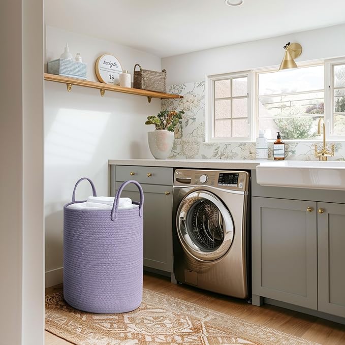 - Stylish and Functional: Featuring a chic boho design and neutral purple solid color, this decorative nursery hamper complements any home decor. Its simple yet elegant look makes it ideal for living rooms, bedrooms, nurseries, and bathrooms. The hampers for bedroom aesthetic can handle all your daily storage needs—from dirty clothes to folded blankets, it's the practical solution for keeping your space tidy and organized.