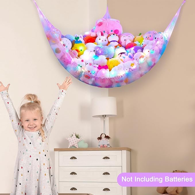 - Toy Hammock: Our stuffed animals net or hammock can be a decoration for your kidsroom; Come with LED light, can add a cozy and fun atmosphere