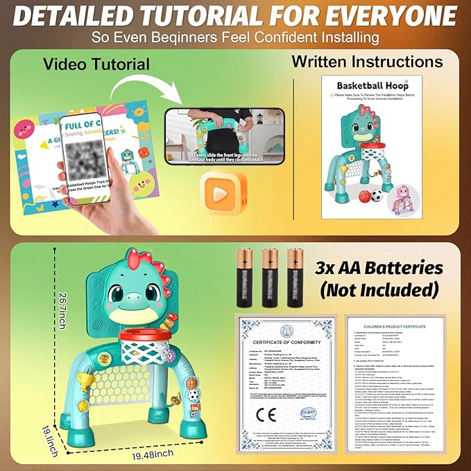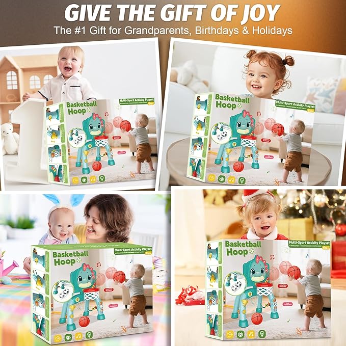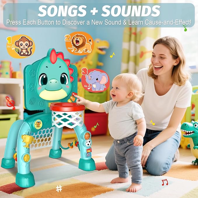- 40-Minute Hands-Free Playtime: Juggling chores with a curious crawler? This BPA-Free, 4-in-1 Dinosaur Sports Center keeps little adventurers busy for 40+ minutes—shooting hoops, kicking soccer balls, grooving to music, and chasing lights—so you can finally tackle tasks worry-free.