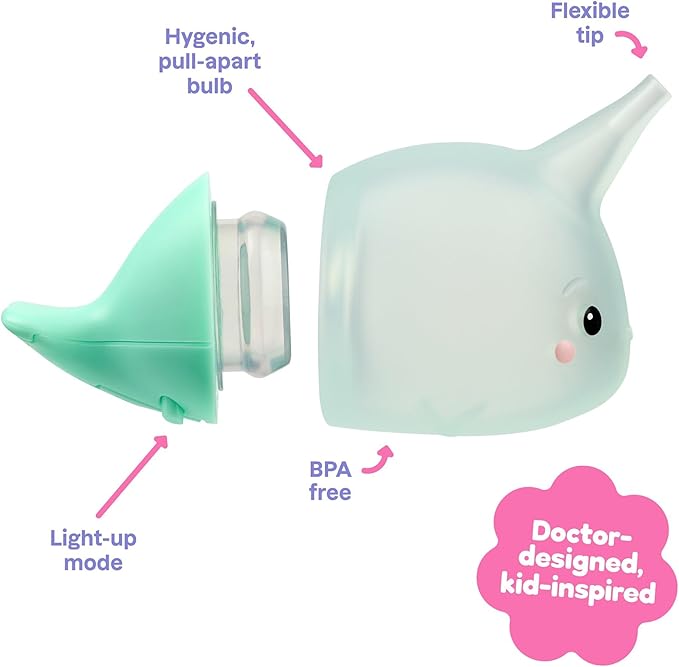 - DOCTOR-DESIGNED NASAL RELIEF: Easy, gentle, controlled suction removes mucus and congestion in babies and toddlers 0+ months with a kid-friendly narwhal character design