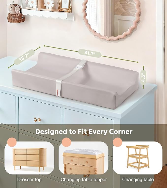 - Universal Size Fit: The size of this baby changing pad is 32in x 15.8in x 4.3in, its fits all standard changing tables and most baby changing table pads, perfect as a changing table topper or portable solution