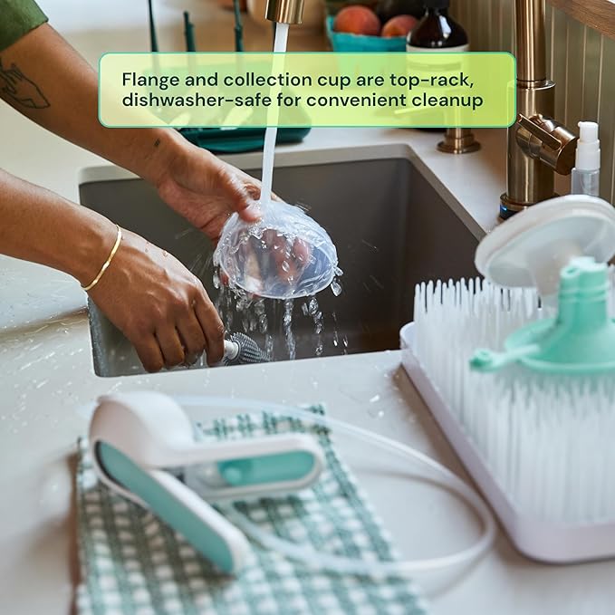 - Portable & Lightweight: 5oz capacity with a Splashguard container with an easy-pour spout to prevent leaks and spills; Adjustable 34 inch tubing for mobility and no charging required; Easy to Clean: Flange and collection cup are top-rack, dishwasher-safe for convenient cleanup