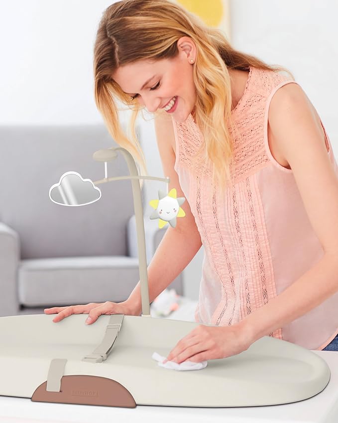 - Tuck-Away Toy Bar for Baby Entertainment: The built-in, tuck-away toy bar includes a baby-safe mirror to engage and entertain your little one during diaper changes