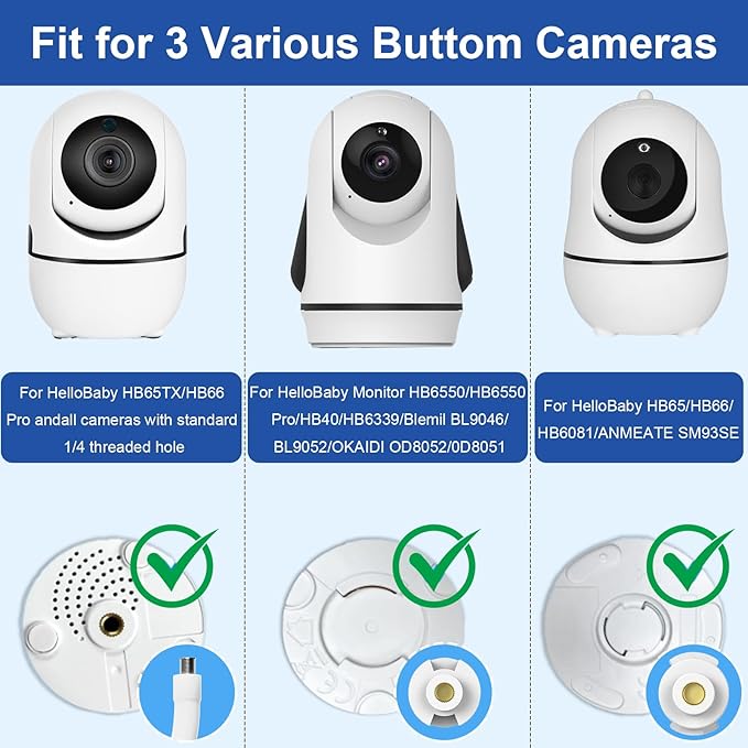 - 【Compatibility】-Hello baby camera mount compatible with HelloBaby HB65/HB6550/HB6550 pro/HB66/HB248, ANMEATE SM935E baby monitor camera. And compatible with Nanit Pro smart baby monitor & flex stand. Flexible clip clamp mount long gooseneck arm and also fit other baby cameras with standard 1/4 threaded hole. (NOTE: Baby monitors are not included)